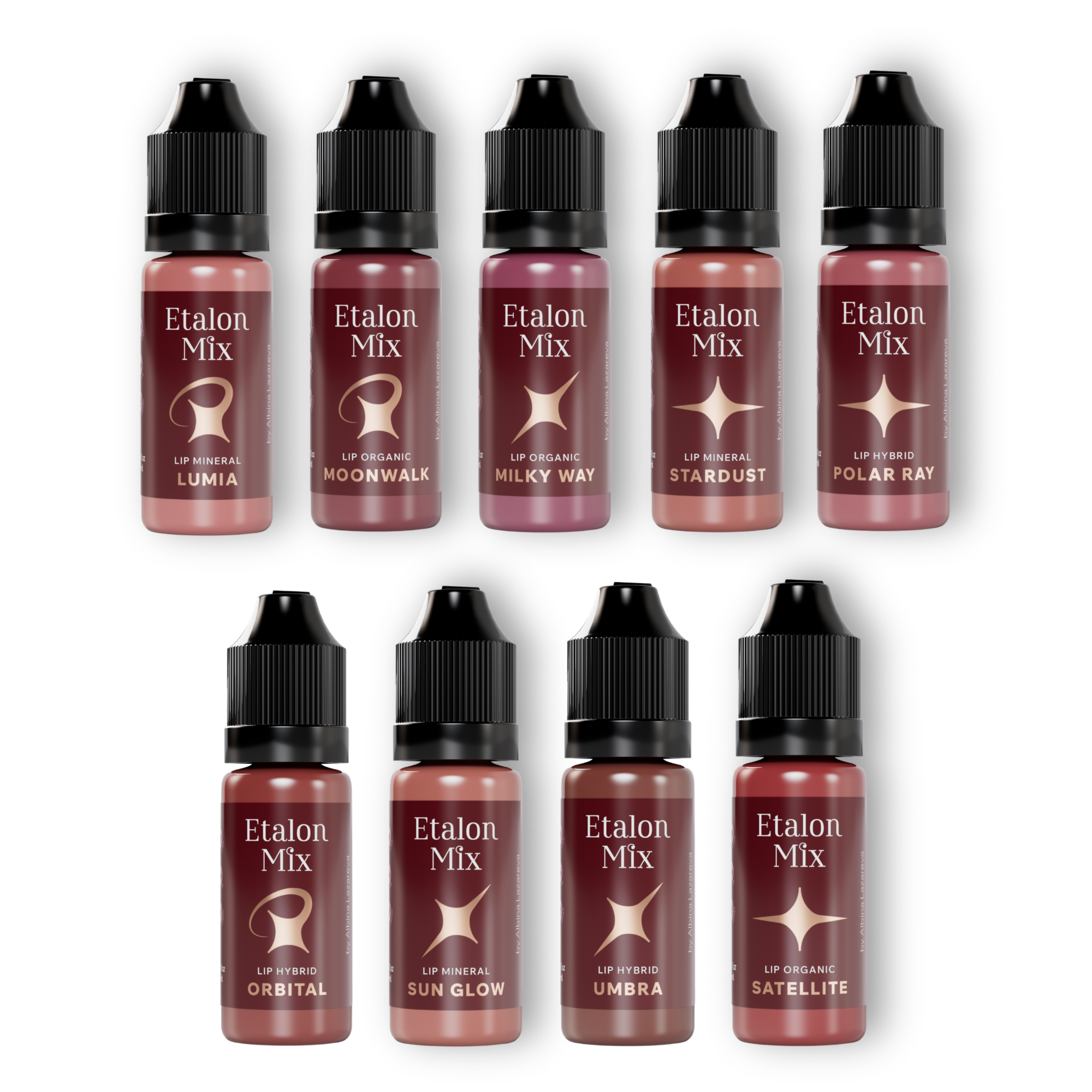 A complete collection of 9 lip pigments, united in three constellations — each shade working as an individual star and as part of a thoughtfully designed mixing system. From soft luminous nudes to deep cosmic accents, the Favor Lips Set gives you full control over temperature, density, and color depth. Every pigment comes in a full-size 10 ml bottle, ready for professional use.