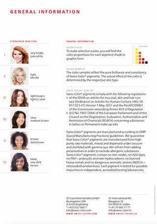 Review the color chart provided to gain a deeper understanding of Swiss Color® pigments and how to use them.
