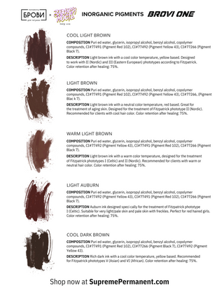 The BROVI+ set is ALWAYS brown brows. These pigments minimize the risk of unwanted healed colors. You can implant them either dense or airy. The are perfectly suited for hair strokes technique and do not require adding correctors.