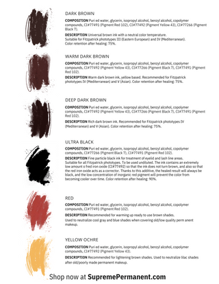 Color Chart for Brovi Brow Pigment Set for Hair Strokes Technique